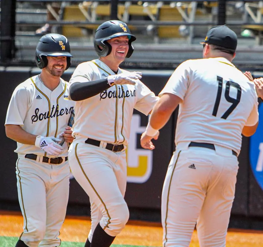 After USM plated three more runs in the second, including a fielder’s choice RBI by Sargent, the Golden Eagles broke away by scoring four runs in the third and five more in the fifth. Matthew Etzel reached base in every at-bat while Dustin Dickerson was 4-for-5, the second 4-hit game for USM.