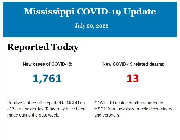 Listed below is the daily COVID-19 update for the state of Mississippi.