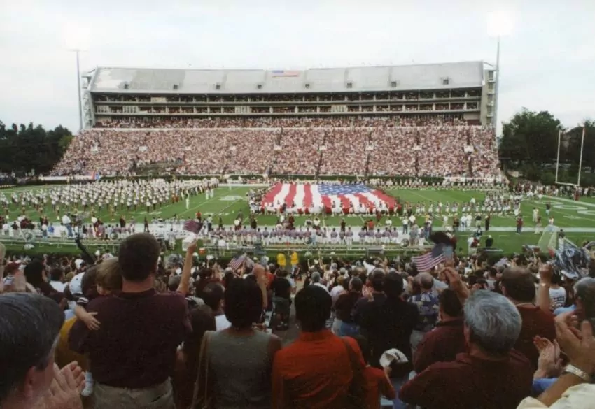 On Sept. 20, 2001, most Mississippi State fans wore red white and blue instead of maroon and white. (MSU athletics)