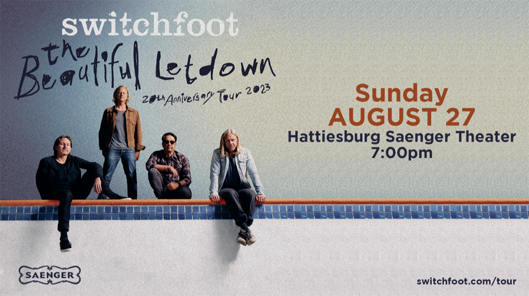 Grammy Award winning rock band Switchfoot will be performing at Hattiesburg’s Historic Saenger Theater on August 27 at 7:30 p.m. The band is celebrating their triple platinum album The Beautiful Letdown’s 20 th anniversary. The new record features re-recordings of chart-topping hits like “Meant To Live” (160M streams) & “Dare You To Move” (235M streams) and more. Tickets go on sale Friday, July 14 at noon and are available through the link: https://www.ticketmaster.com/event/1B005EE6E4884D52 . Regular tickets for Switchfood – The Beautiful Letdown 20th Anniversary Tour range from $25.50 - $45.50 plus fees. The VIP1 ticket price is $279.50 plus fees and the VIP2 ticket price is $149 plus fees.