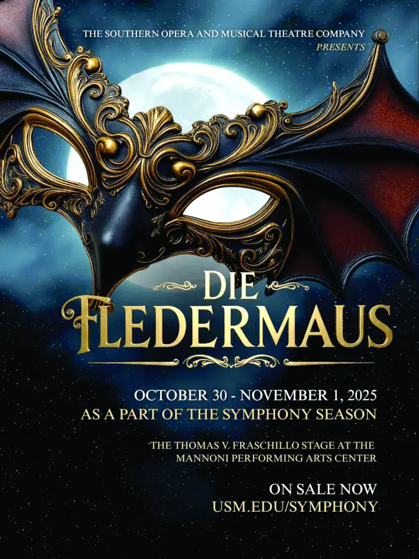 The University of Southern Mississippi (USM) School of Music’s Southern Opera and Musical Theatre Company invites audiences to a rollicking, laugh-out-loud production of Die Fledermaus (The Bat), directed by Jonathan Yarrington and accompanied by The USM Symphony Orchestra under the dir
