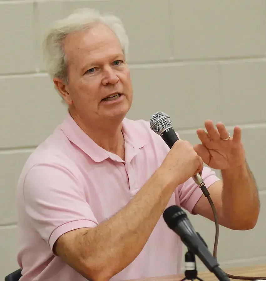 Water systems third-party administrator Ted Henifin, answers questions from concerned residents regarding the current state of the city's water system during a town hall meeting held at Forest Hill High School, Wednesday, Dec. 7, 2022. Credit: Vickie D. King/Mississippi Today