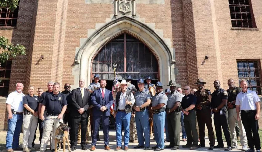 Ag Commissioner Andy Gipson, along with state and local law enforcement officials, addressed security staff and safety measures for the upcoming 2022 Mississippi State Fair. Pictured are officials representing the Mississippi State Fairgrounds, Mississippi Highway Patrol, Mississippi State Capitol Police, Department of Homeland Security, State Fire Marshal’s Office, Mississippi Department of Wildlife, Fisheries and Parks, Mississippi Agricultural and Livestock Theft Bureau, Hinds County Sheriff’s Office, and Jackson Police Department.