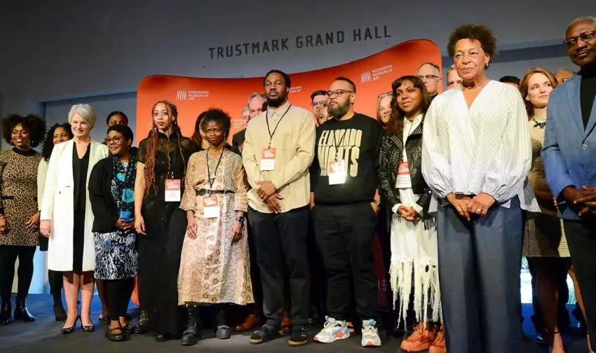 Artists, patrons of the arts and Mississippi Museum of the Arts staff kick off the exhibit, “A Movement in Every Direction: Legacies of the Great Migration,” an homage to the social, economical and cultural impact that resulted from the exodus of millions African Americans from the South to northern states. The exhibit, “A Movement in Every Direction: Legacies of the Great Migration,” opened today at the Mississippi Museum of Art in Jackson, Friday, Apr. 8, 2022. Credit: Vickie D. King/Mississippi Today