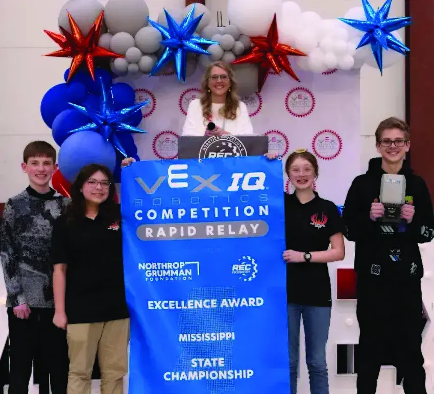 Petal Middle School’s (PMS) FireHawks Robotics Team 49378F has earned top honors at the Mississippi VEX IQ State Robotics Competition, taking home both the Excellence Award and the Skills Champion Award. These prestigious awards qualify the team to compete at the VEX IQ World Championship in Dallas, Texas, set for May 12–14, 2025.