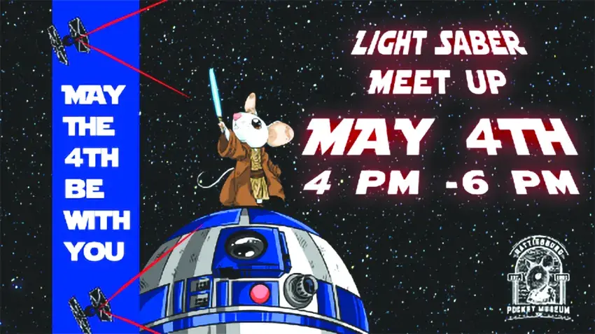 May the Fourth be with you! The Hattiesburg Pocket Museum is calling all Jedi, Sith Lords, smugglers, rebels, and droids to gather for an intergalactic celebration like no other. Join us on Sunday, May 4, 2025, from 4:00 PM to 6:00 PM for the Lightsaber Meetup — a Star Wars Day celebration that’s strong with the Force.