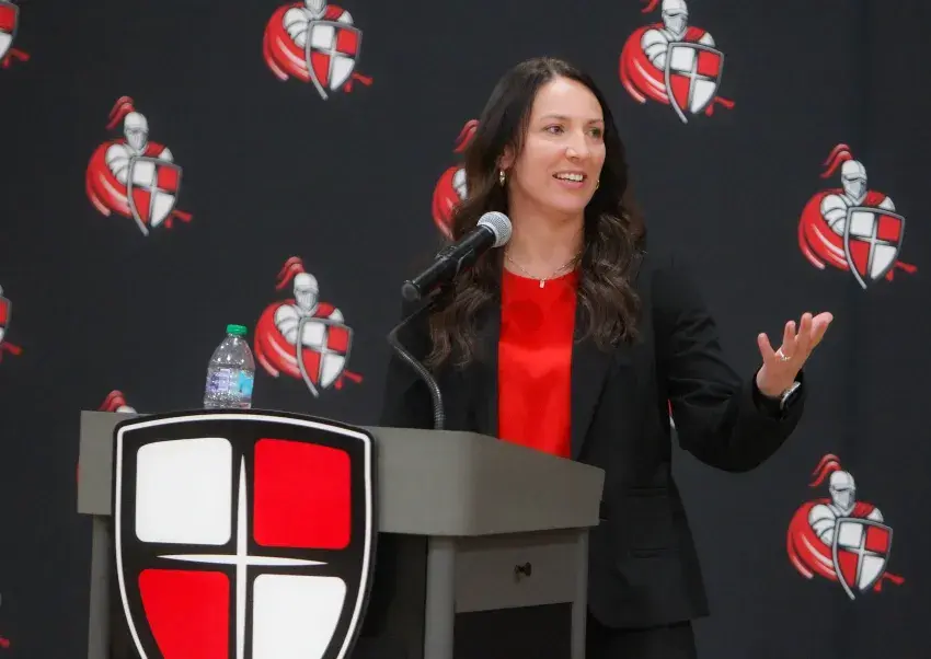 Longtime assistant Jessica Garriga was officially introduced as the Lady Crusaders' new head coach on Wednesday after Tracy English stepped down to fully take over as the school's athletic director.