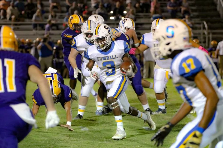 PURVIS – Behind the legs of running back, JJ Parker Sumrall defeated rival Purvis 34-0.